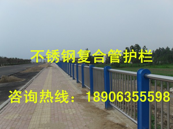 護欄簡介:不銹鋼復合管制作成不銹鋼復合管欄桿,它不僅具有不銹鋼管的豪華美觀和現代氣息,又具有普通碳鋼管的堅韌性。是價昂不銹鋼管的替代品,它與鋼板立柱配合,做成城市、道橋等的安全欄桿。不僅牢固、大方,且可造型各異,給都市別一種亮麗風景線。