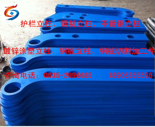 山東飛龍有限公司有大型數控異形切割機、離子切割機、沖床、鍍鋅、噴塑車間專業生產不銹鋼復合管護欄用護欄立柱,鋼板立柱、鋼制立柱、橋梁護欄立柱、各樣式護欄立柱,鍍鋅噴塑護欄立柱和各種鋼板切割加工件等。 護欄立柱主要原料材質有Q系列鋼板(Q195-235)和不銹鋼鋼板,經過鍍鋅噴塑處理,使鋼板耐酸耐堿耐腐蝕、日曬雨淋不生銹,不脫層、經久耐用、豪華美觀豪、質堅、價廉等一系列突出優點,使表面光滑明亮達到美觀的效果!護欄立柱和不銹鋼復合管組合制作的護欄/欄桿現在已經廣泛應用,大多旅游景點已經逐步在更換這種產品!其特點美觀,耐腐蝕,成本比純不銹鋼便宜很多!不銹鋼復合管與護欄立柱配合,現已廣泛應用到做橋梁/河道護欄、市政建設、城市護欄、道路護欄、人行扶手和各種金屬景觀護欄,不僅牢固、大方,且可造型各異,給都市一種亮麗風景。